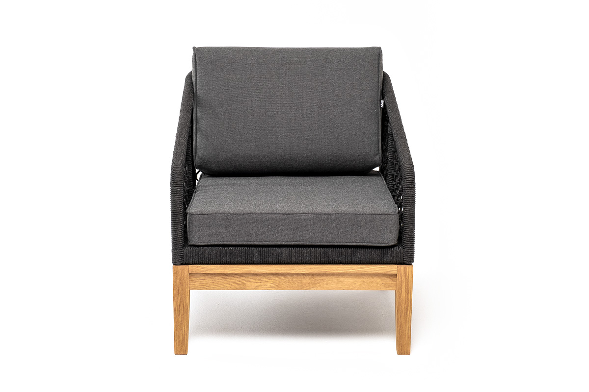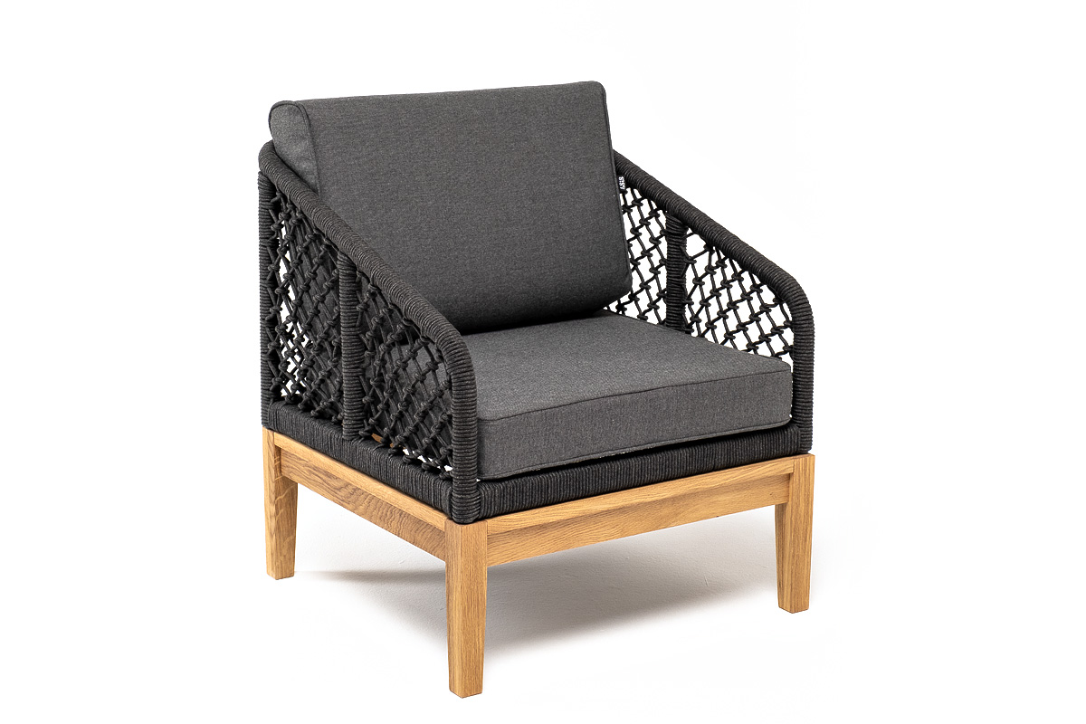 Кресло «Канны» с узловым плетением из роупа идеально подходит для комфортного отдыха в саду или на веранде.